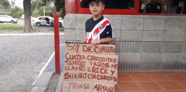 Un pequeño de 7 años logró el objetivo. Erik fue con un cartel dedicado al arquero del Millonario, que apenas leyó el mensaje no dudó en actuar.
