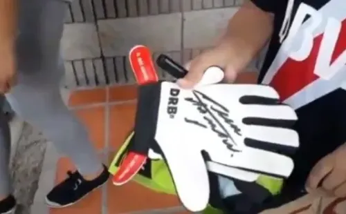 El 1 no solo le dio una foto, si no que se bajó a charlar con el nene y le regaló sus guantes firmados. Eso no fue todo: también se llevó una foto con Marcelo Gallardo.