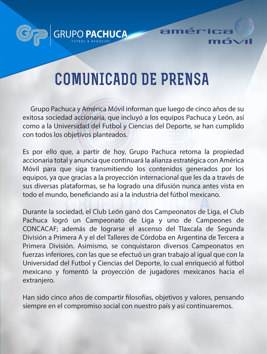 Una de las sociedades más exitosos del futbol mexicano ha dejado de existir. Grupo Pachuca y Carlos Slim, a través de América Móvil, dejaron rompieron relaciones y la totalidad de acciones vuelven a manos de Martínez.
