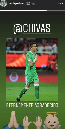 Un día más tarde, el portero de apenas 22 años publicó su historia más emotiva en instagram y agradeció al ambiente de Chivas en sí por el respaldo junto a una foto de él con la mano derecha en el corazón.