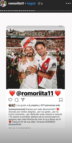 Compañeros del Millonario, excompañeros en todos los clubes por los que pasó y amigos le dejaron su cariño al dos veces campeón de América.