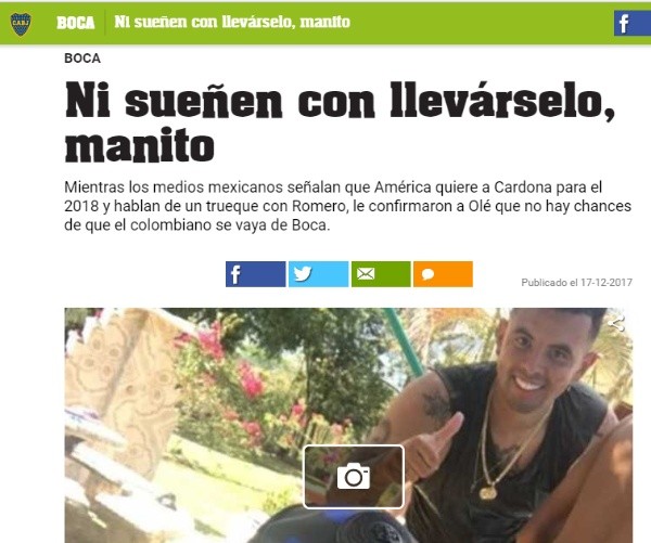 El famoso diario Olé, se dio a la tarea de consultar directamente a Boca Juniors y la respuesta fue clara: “No hay chances. Salvo que el jugador pida irse, que hasta ahora no pasó, es imposible que se vaya. Está encantado con Boca”.