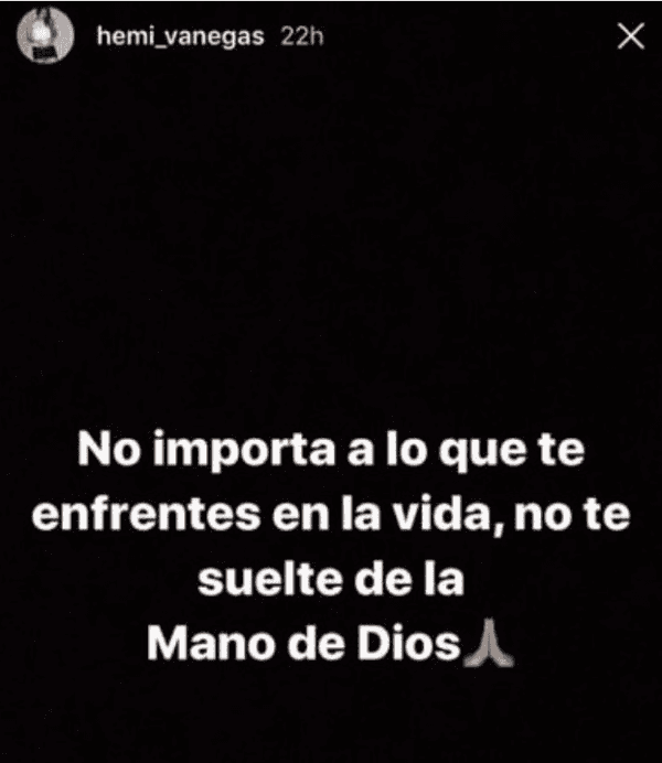 “No importa a lo que te enfrentes en la vida,no te sueltes de la Mano de Dios”, escribió Hemilly Vanegas en la red social.