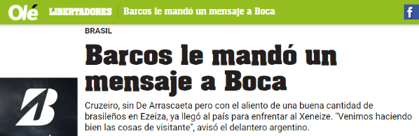 Hernán Barcos, delantero del elenco de Brasil, explicó en su llegada a Argentina cómo van a intentar vencer al Xeneize.