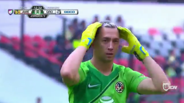 El portero de las Águilas se dió vuelta tomándose la cabeza, como no entendiendo cómo es posible que Renato haya clavado semejante disparo.