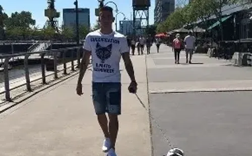 Subió una foto caminando por Puerto Madero en este día de sol, mientras pasea a su perro con mucha calma. Parecería que cada accionar es un mensaje.