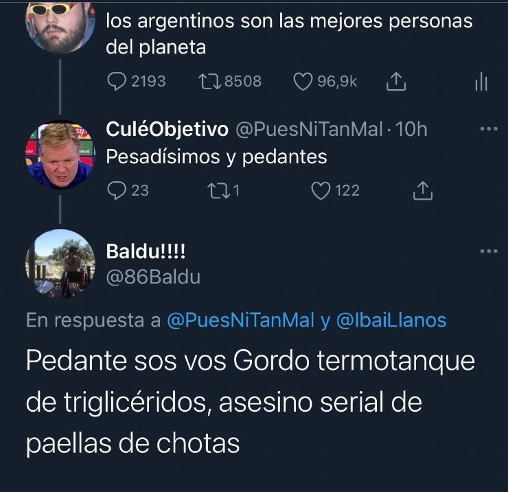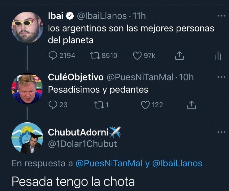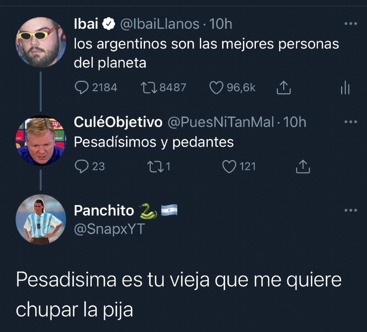Por privado, uno se encargó de escribirle para sostener la teoría, y decirle que los argentinos no insultan mucho: “Es una mentira exagerada, acá siempre estamos con buena onda”, dijo el usuario.