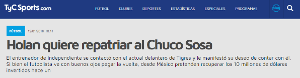 El deseo del profesor es traer a Ismael Sosa, quien jugó en el elenco de Avellaneda entre 2007 y 2009.