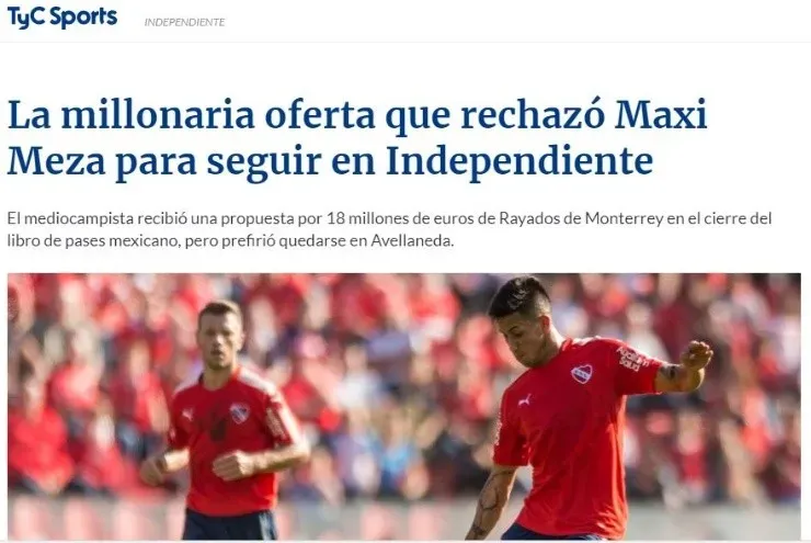 Pese a ello, Independiente, club en el cual el centrocampista juega, se encuentra alerta. El jugador tieneuna cláusula de rescisión de 25 millones de dólares, pero eso no le impidió a una institución consultar por él.