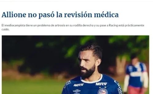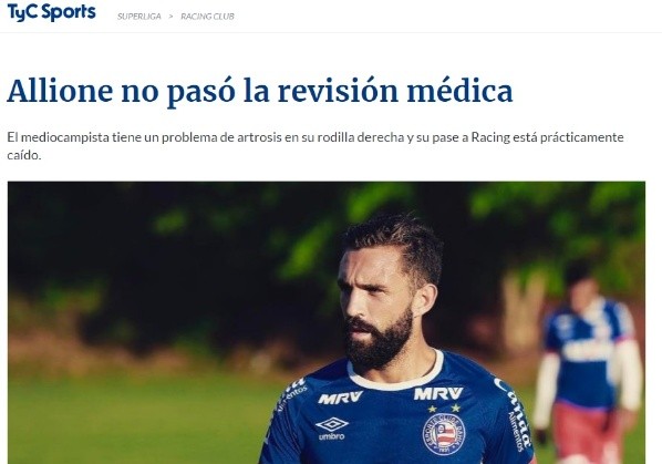 Allione presentó una artrosis en la rodilla derecha. Como consecuencia, su llegada al equipo que se encuentra disputando la presente edición de la Copa Libertadores de América está prácticametne caída.