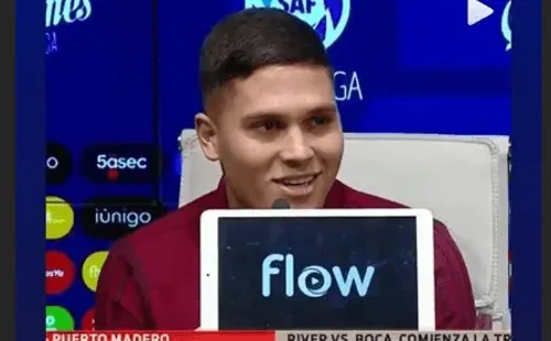 El volante colombiano estaba hablando en conferencia de prensa, ella le hizo captura y subió la imagen acompañada por un “Mi panita”.