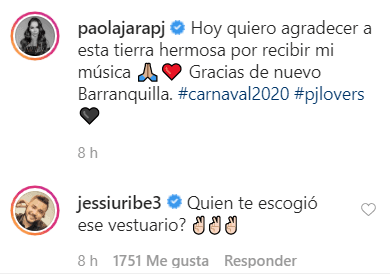 Acto seguido, Uribe le comentó: “Quien te escogió ese vestuario? ✌��✌��✌��”, por lo que confirmaría que él se está dando el crédito por el vestido que se puso para la presentación.