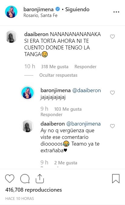 El paréntesis al deporte lo tuvimos que hacer, de igual manera, por un genial intercambio que se dio con una seguidora, que le comentó: “NANANANANANAKA SI ERA TORTA AHORA NI TE CUENTO DONDE TENGO LA TANGA”. Liviano.