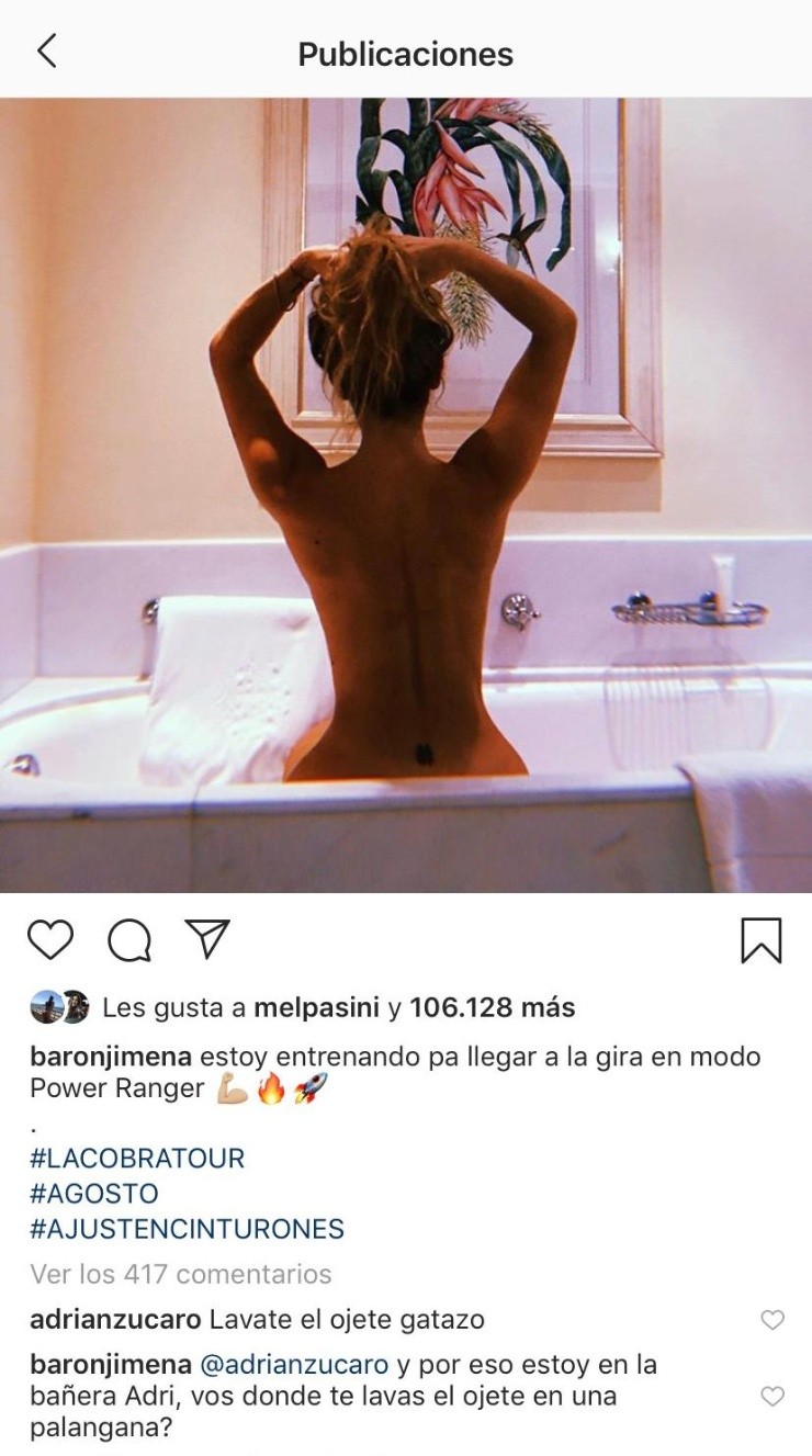 Para darle un poco de calor a este frío jueves,Jimena Barónsubió una foto de espalda y desnuda en su bañera.