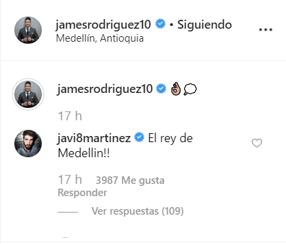“El Rey de Medellín”, le comentó Martínez en la imagen de James en Instagram.