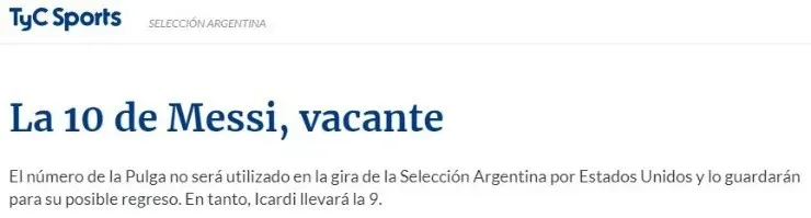 Según detalló TyC Sports, finalmente nadie portará el dorsal que La Pulga uso en el Mundial de Rusia 2018.