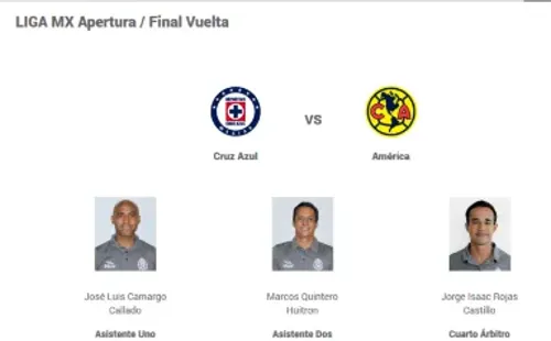 César Arturo Ramos fue el juez designado para el encuentro de vuelta de la Final entre Cruz Azul y América del domingo, según lo anunció el sitio oficial de la Femexfut. José Luis Camargo y Marcos Quintero Huitrón serán los asistentes, mientras que el cuarto árbitro será Jorge Isaac Rojas.