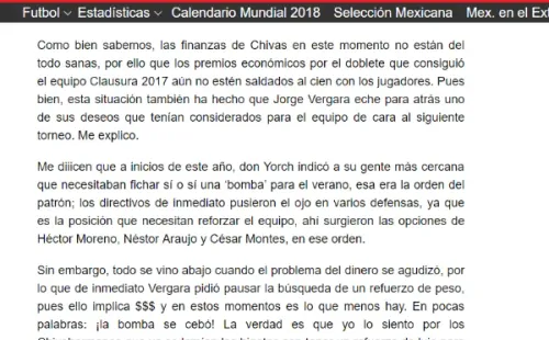 “La verdad es que yo lo siento por los Chivahermanos que ya se lamían los bigotes con tener un refuerzo de lujo para el siguiente semestre, peeero de momento deberán seguir esperando”, cerró la columna.