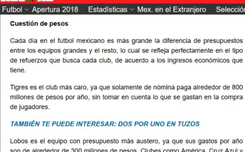 Por otra parte, Lobos BUAP es el equipo más austero de la Primera División: sus gastos en la temporada rondan los 300 millones.