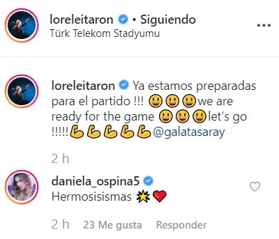 Pero previo al encuentro, Lorelei Tarón, la esposa del artillero colombiano, publicó en Instagram una foto junto a su hija menor en la cual decía: “Ya estamos preparadas para el partido !!! ������we are ready for the game ������let’s go !!!!!����������@galatasaray”.
