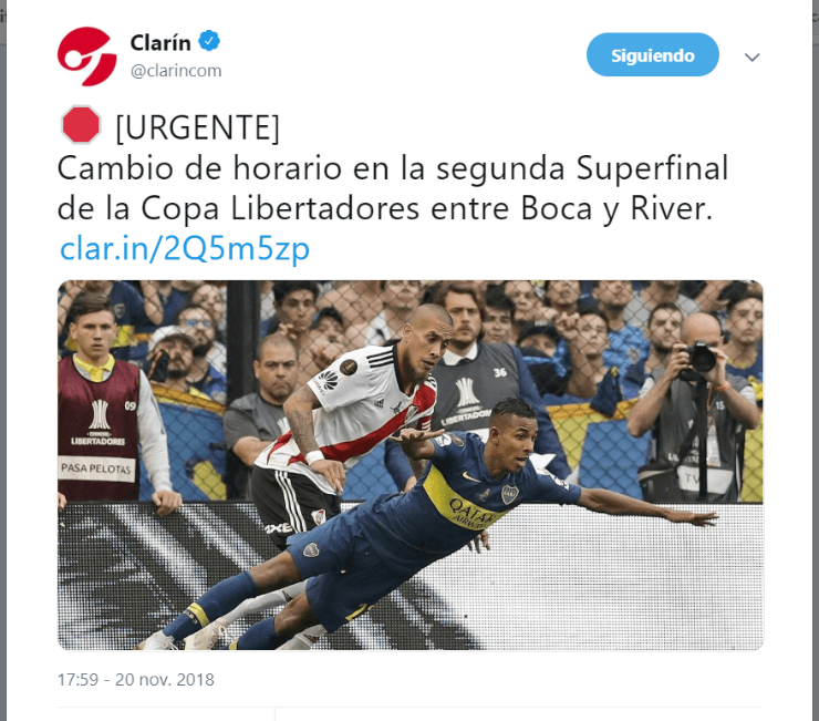 Por motivos de seguridad, el gobierno argentino y el ente que regula el fútbol sudamericano habrían decididocambiar la hora del inicio del encuentro.