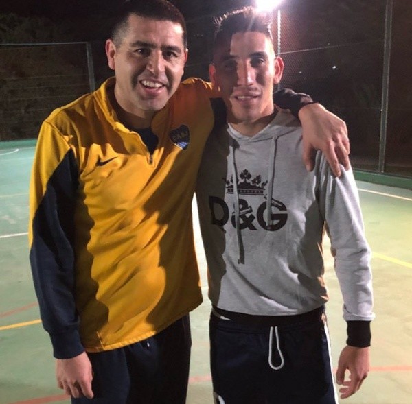 Dentro de una cancha de fútbol, posando con Juan Román Riquelme, quedó inmortalizado un choque de cracks.