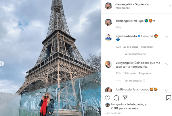 En las últimas horas, la rubia publicó una foto donde se la puede ver con la Torre Eiffelde fondo. “Mi lugar”, escribió.