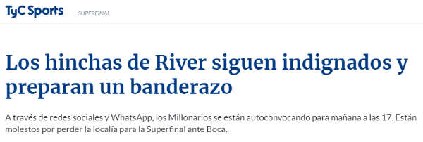 Según reza la imagen que se compartió en muchos muros de gente de River, se “exige localía y público exclusivo de River Plate en la final”.