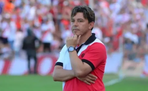 Pero en los cuartos de final de Copa Argentina ante Sarmiento de Resistencia lució una remera especial, con los colores del Millonario, que enloqueció a todos.