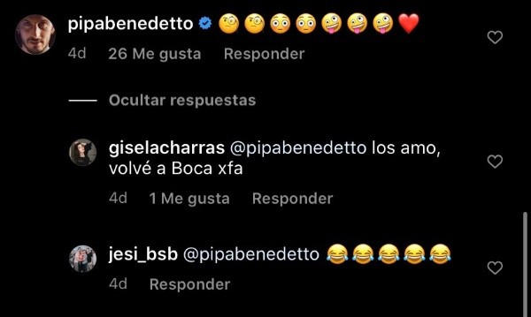 En uno de los últimos posteos apareció el futbolista, dejando una lluvia de emojis que le generó dicha imagen. Que linda vida.