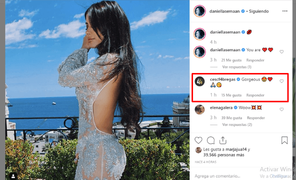 El actual jugador de Mónaco y ex-Barcelona vio la imagen en la red social y no dudó en dejarle un comentario. “Gorgeous”, le puso.