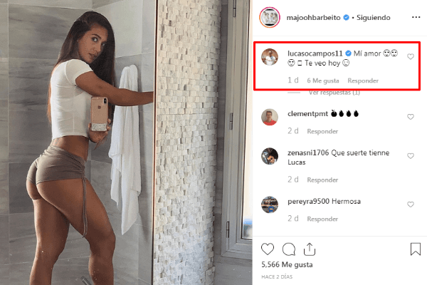 Ahora, la bomba publicó una selfie que se tomó en el baño, Ocampos la vio y le puso: “Mí amor, Te veo hoy”, con unos emojis que lo dicen todo.