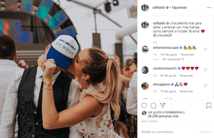 A través de su cuenta de Instagram, la esposa del uruguayo, adjuntando una postal de los dos, redactó: “Una piedrita mas para saltar y arrancar con mas fuerzas, como siempre lo hiciste! Te amo!”.