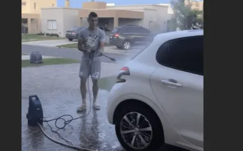 A puro chorro de hidrolavadora y con el short de Racing,Centuse coló en las historias de Instagram deMel,quien lo apodó como “Mi mulo”. ¡Cómo lo van a gastar en el vestuario mañana!