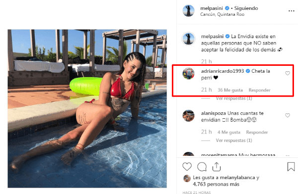 Ella se llama Mel Pasini y en los últimos días publicó unas fotos donde se la podía ver en una pileta en Cancún.