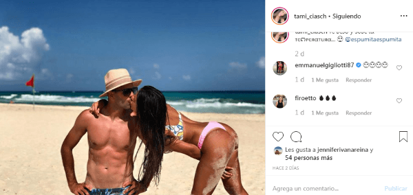 Justamente, ella publicó una foto de ambos donde se los puede ver muy dioses en la playa y él le dejó un comentario.