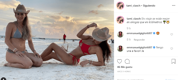 Justamente, en la última que subió, a la mujer se la puede ver divirtiéndose con una amiga en la arena. Dos bombas.