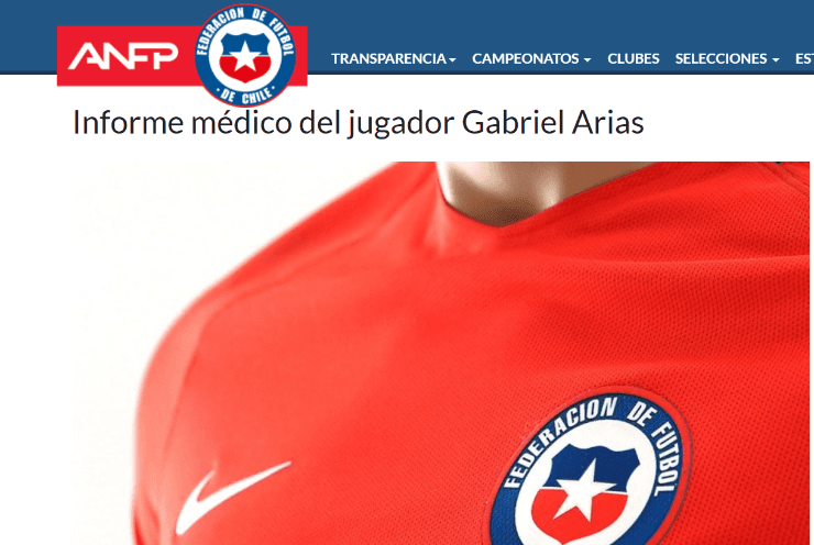 Su arquero, Gabriel Arias, se fracturó el cuarto metacarpiano en su brazo derecho y quedó desafectado de la Selección chilena.