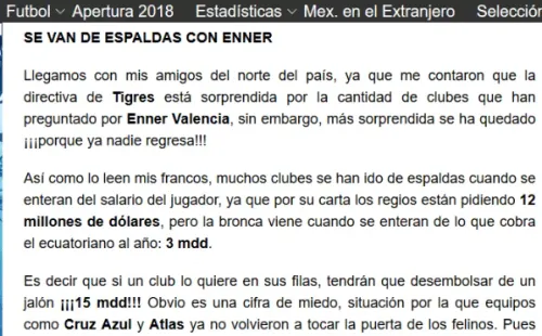 Cuando Tigres declaró transferible a Enner Valencia, todos imaginábamos que iban a llover las ofertas en el cuadro del norte. Pero esto no fue así.