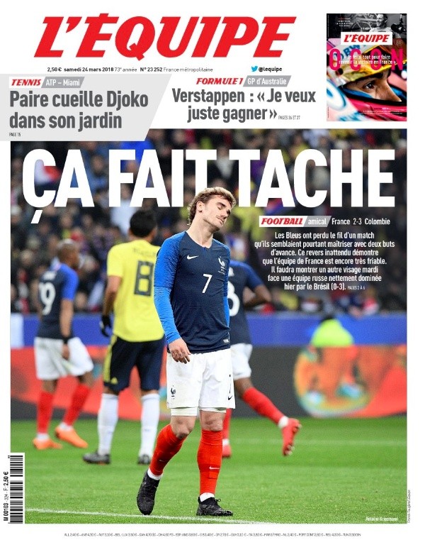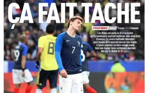 L’equipe, el diario deportivo más popular de Francia, le dedicó la tapa del periódico ala derrota del elenco deDidier Deschamps.