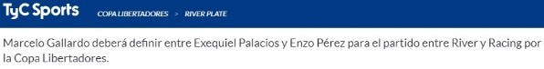 Marcelo Gallardo maneja una única duda de cara a uno de los duelos más importante del semestre para River, ante Racing por Copa Libertadores.
