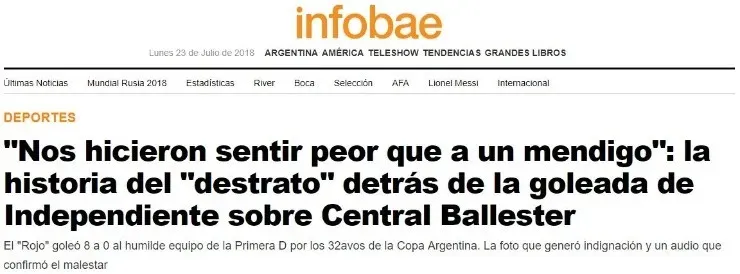 La goleada de Independiente ante Central Ballesterpor Copa Argentina generó un gran debate sobre el tema del respeto a partir del desequilibrio de calidad de ambos elencos. El 8 a 0 dio fruto e hizo nacer una gran polémica que invadió los medios.