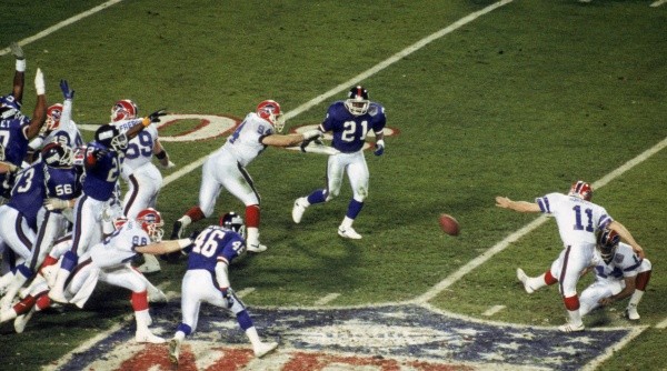 Fue la definición más pareja de la historia. Además, fue la primera, y la más dolorosa, de cuatro derrotas consecutivas que sufrieron los Bills en Super Bowl. En esta oportunidad, enfrentaban a los Giants.