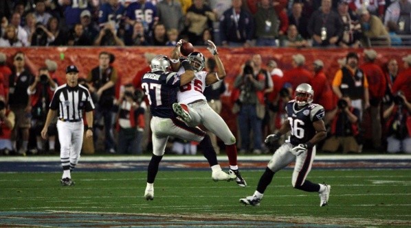 Con un poco más de un minuto en el reloj, Eli Manning logra escapar de sus oponentes y lanza un pase largo para David Tyree, quien marcado por Rodney Harrison, captura el balón presionándolo con su propio casco. Cuatro jugadas después, Manning dio un pase de anotación para Plaxico Burress y lo Giants se consagraron campeones venciendo a los todo poderosos Patriots por 17-14.