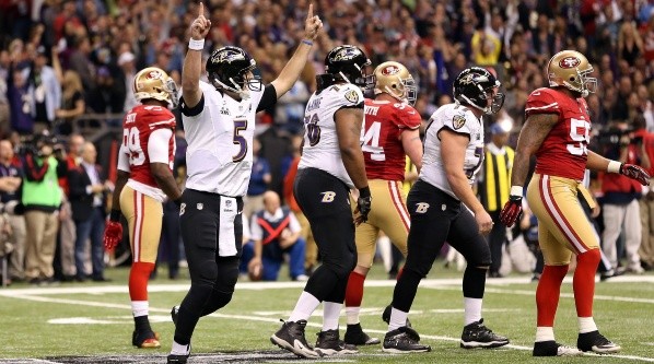 Fue bautizado como el Harbaugh Bowl, por el duelo entre los hermanos John y Jim, entrenadores de los Raves y 49ers, respectivamente. El conjunto de Baltimore contaba con una ventaja de 28-6 a comienzos del tercer cuarto, pero los de San Francisco lograron quedar abajo 31-29.