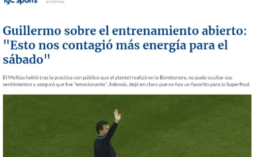 Según detalló TyC Sports, Guillermo hizo referencia, lógicamente, a la concurrencia de la gente de Boca al entrenamiento y reveló:“Esto nos contagió más energía para el sábado”.