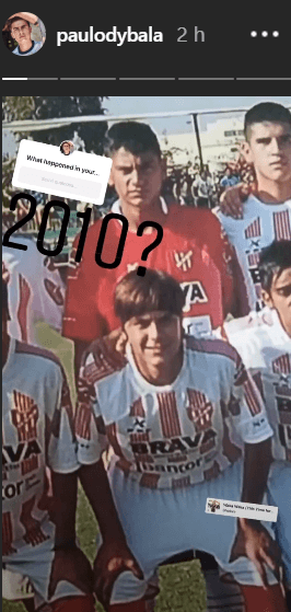 A través de una historia que publicó en Instagram, el delantero de Juventus y el seleccionado argentino compartió un recuerdo de aquellos tiempos, con un look un tanto diferente, cuyo rasgo distintivo era una vincha negra.
