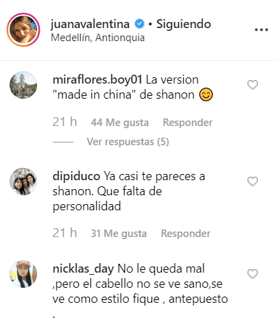 Luego de subir una fotografía a Instagram, sus seguidores le dijeron: “a version “made in china” de shanon ��”, “Ya casi te pareces a shanon. Que falta de personalidad”.