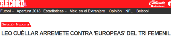 No le gustó a LeonardoCuéllarlas últimas participacionesde la Selección mexicana. Principalmente el nivel de las jugadoras que militan en Europa.