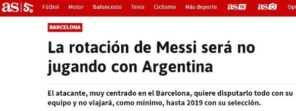 Según el Diario As, en una columna escrita por Moisés Llorens, la decisión del argentino sería no volver, mínimo, hasta 2019.